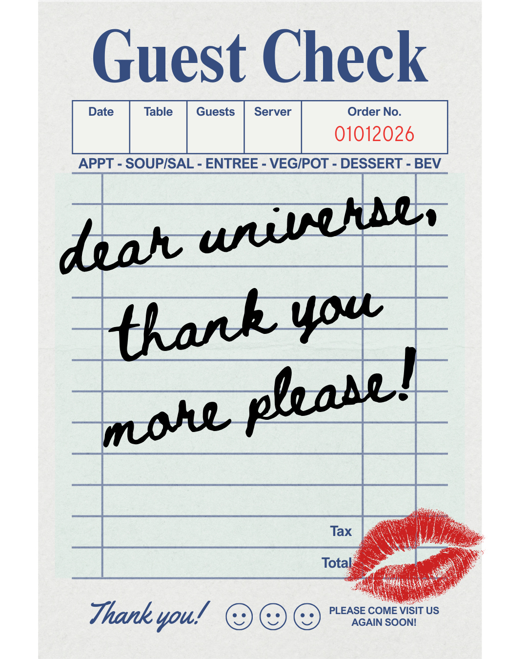 Essentially, when something good happened to her—especially if it was unexpected or spontaneous—she would whisper to the universe “thank you! more please!” to energetically let the world know she was happy to receive that moment and would like some more.