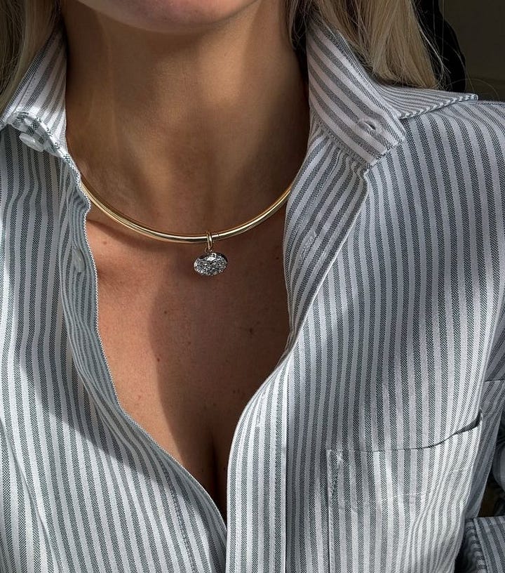 A year+ ago I fell in love with this Jessica McCormack diamond choker necklace. Unfortunately for me (and likely for you) it’s out of our price range…coming in at a whopping $135K, depending on the diamond.