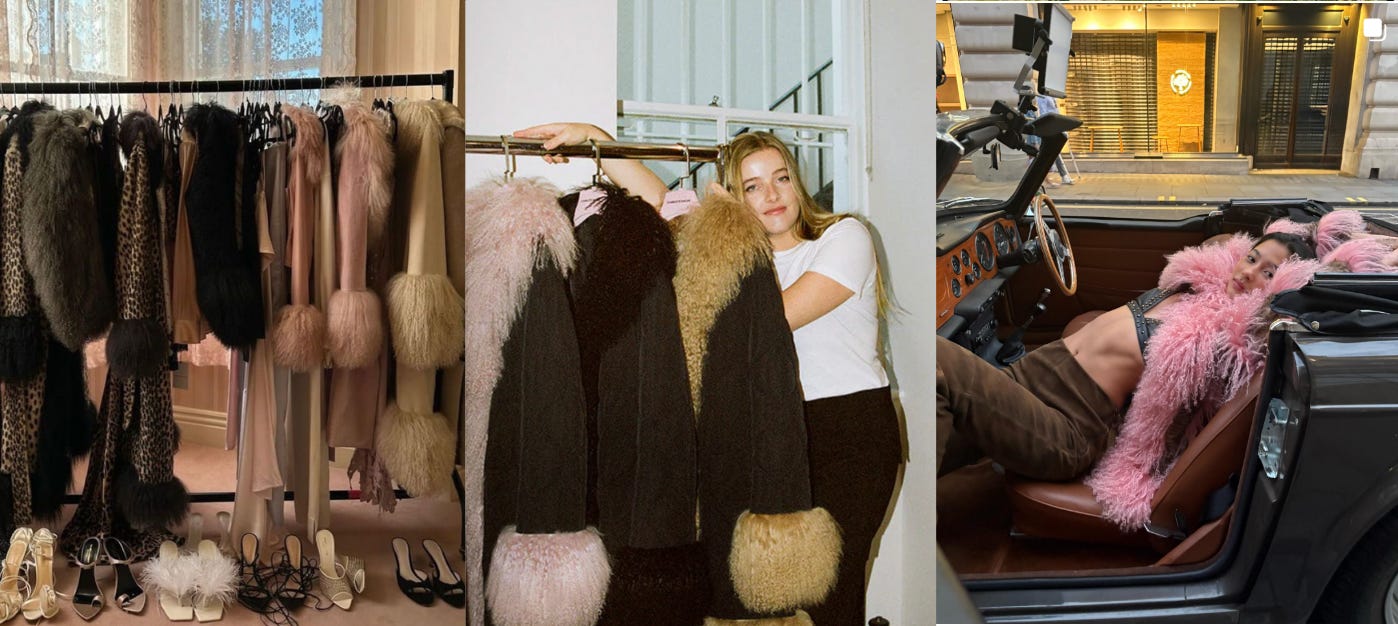 Show me the coolest girl in London and I guarantee there’s a Charlotte Simone hanging in her closet. The first Charlotte Simone coat that ever tickled my eyes was the Pink Penny and god—I wish I bought it right then and there. As quoted on her website, “(Charlotte’s) designs are heavily inspired by nostalgia, womanhood and vintage silhouettes.” Though her styles feature oversized collars, fur-trimmed cuffs, animal prints, and various shades of pink, they feel classic. I don’t know how, but she makes a leopard print and pink fur-trimmed jacket look timeless, not trendy. All of her pieces are made to order in drops, amplifying their cool given their limited production numbers. Her belief is to create less, but better and given the fact that I’ve been lusting over them for years I’d say she quite excels at that. Talk about extra f*cking dressed.