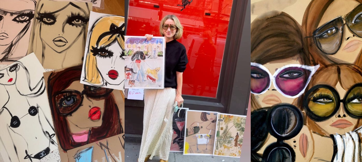 My favorite artist and illustrator. I love the way Blair sees and depicts women, always sure to accentuate their most feminine features with flirty lashes, pouty lips, and sharp, but still soft angles. I wish I could see the year I followed her on Instagram, because I’ve been a quiet champion of her work for many years. For much of my life her work was out of my budget (rightfully so!), but I always knew I wanted one of her illustrations in my big girl apartment, whenever I got one. Luckily for me, she decided to do sidewalk sales in Soho this summer and I finally got to meet her in person and get my Blairz original (on the left above).